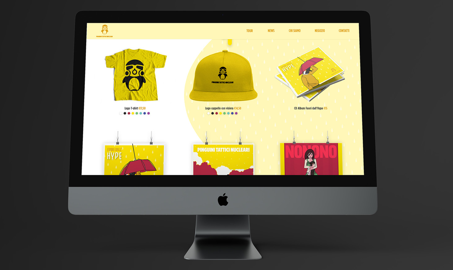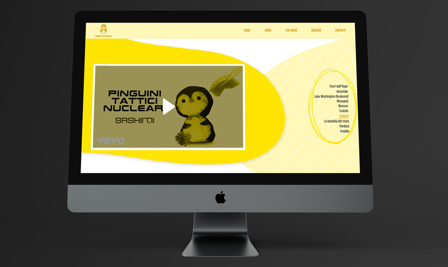 The Pinguini Tattici Nucleari are an Italian indie rock band formed in Bergamo in 2010. The brief required the realization of the entire branding: logo design, album with CD and booklet, single, posters, merchandise, responsive website and a music video promoting the band.