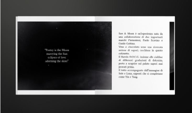 The brief included the construction of a packaging that contained the products of Scavino and Gobino correlated by a brochure that eventually explained the theme chosen for the graphics that bind the whole.